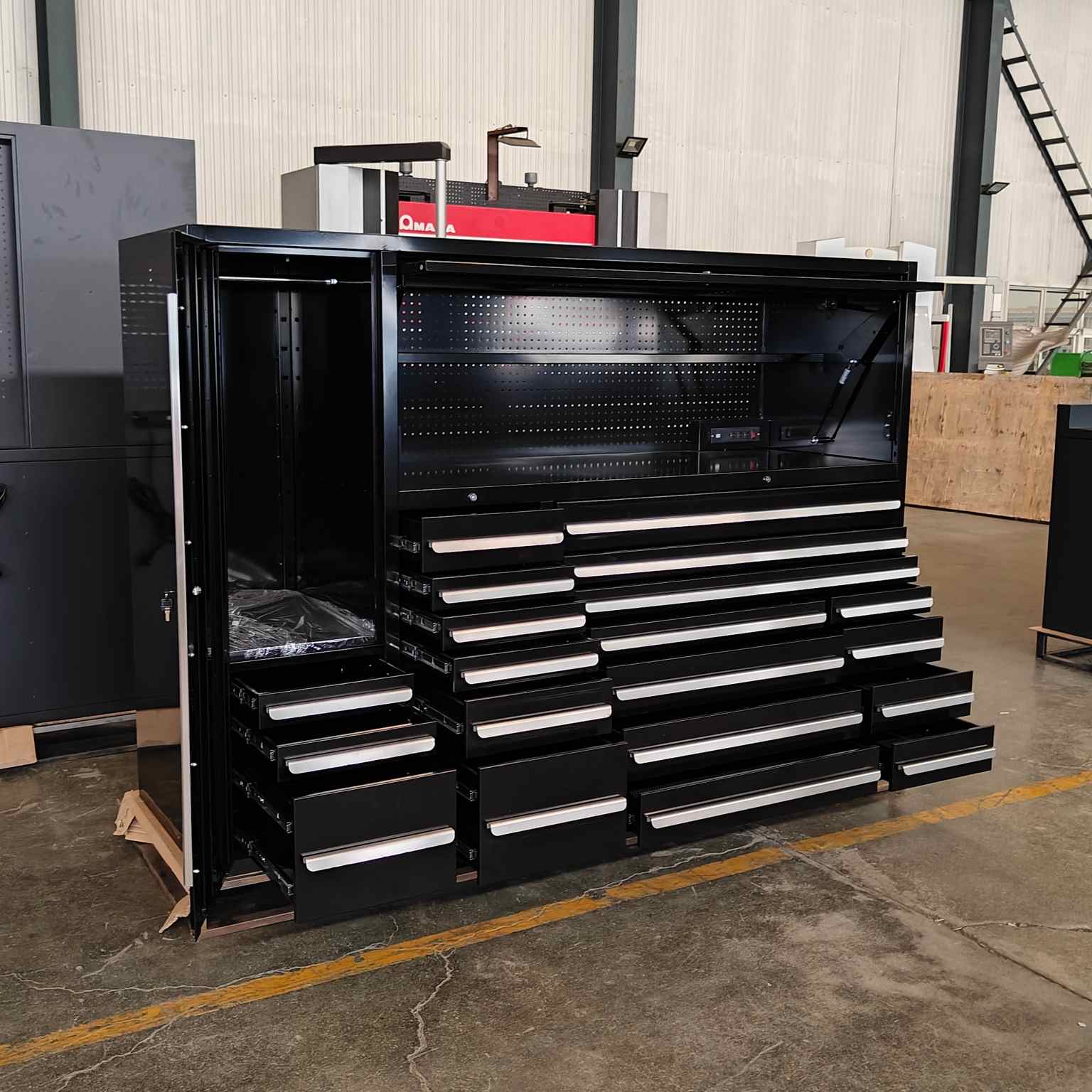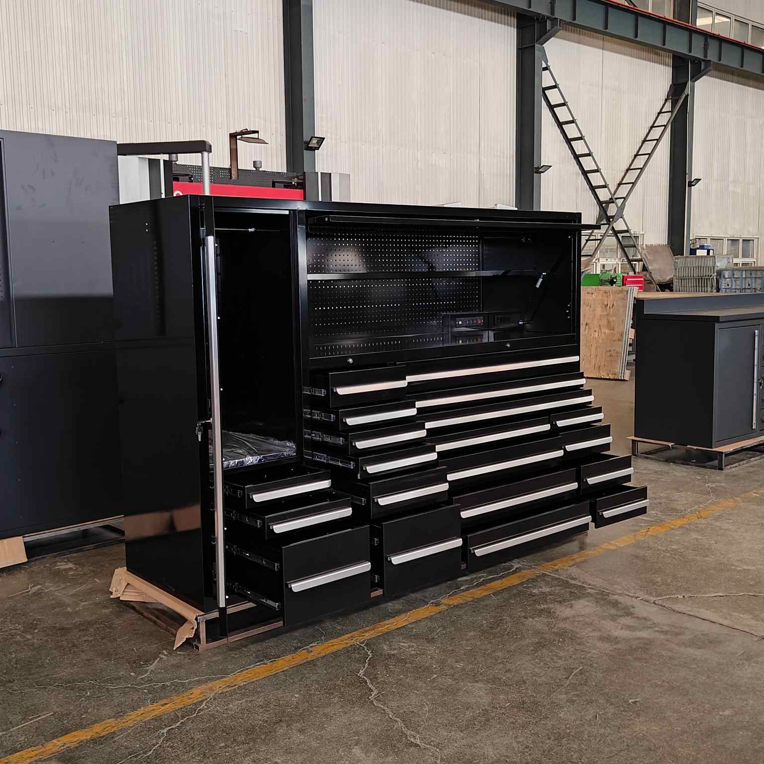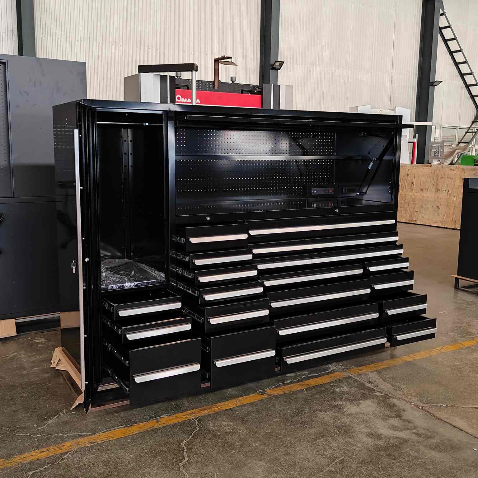 Cyjy funtzio anitzeko armairuaren armairua garaje lanetan, etxeetan eta konponketa dendetan erabil daiteke eta tresna-aparkalekuekin, entxufeekin eta biltegiratze tiraderekin hornituta dago. Cyjyko tresna anitzeko tresna beltzak erosotasuna eman du fabrika tailerrean.