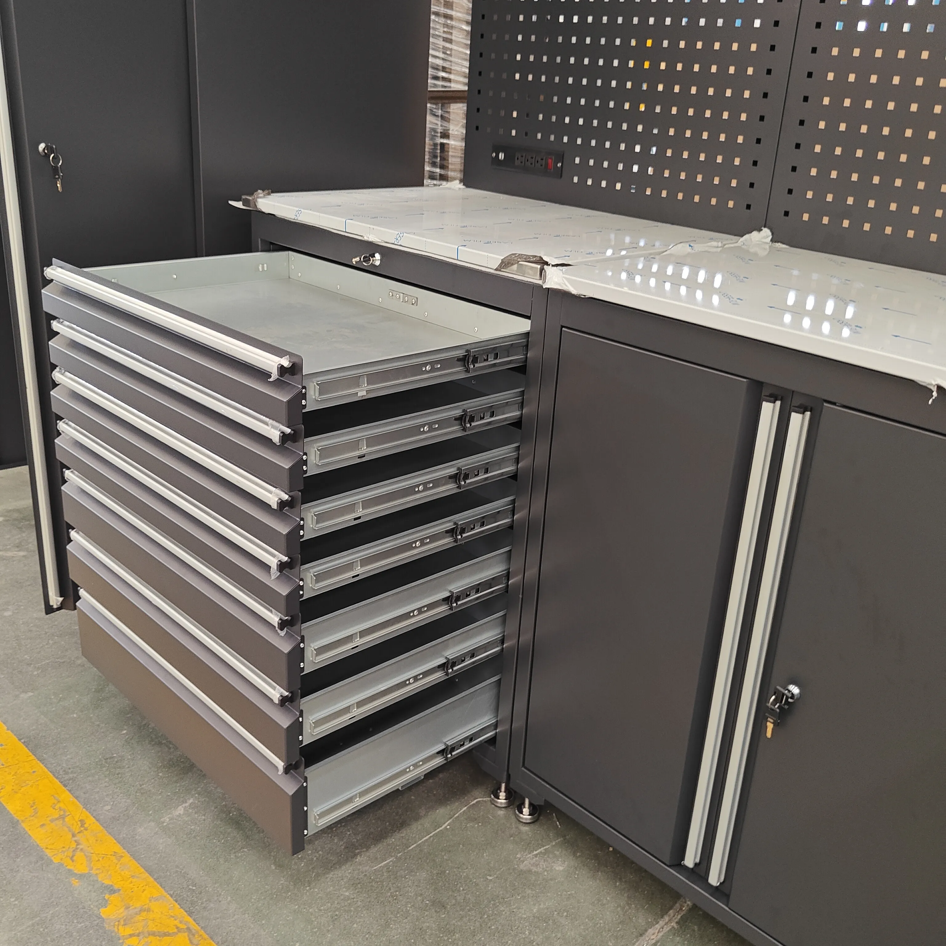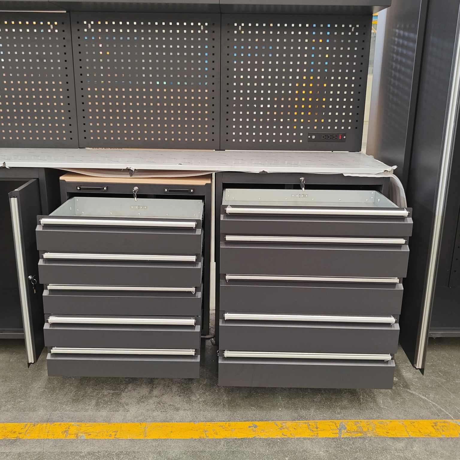 Cyjy Professional Garaje Tresna Kabinetea industria-mailako biltegiratze konponbidea da, lan ingurune gogorretarako diseinatua. Tresna astuneko armairu hau altzairuzko hotzean dago eta erabiltzaileen beharrak asetzen ditu. 17 altuera pertsonalizagarritzako tiraderekin hornituta dago, aparteko erakunde gaitasunak eta tresna sarbide egokia eskaintzen ditu.