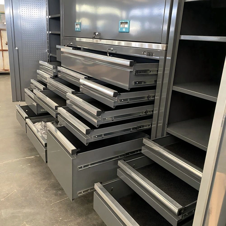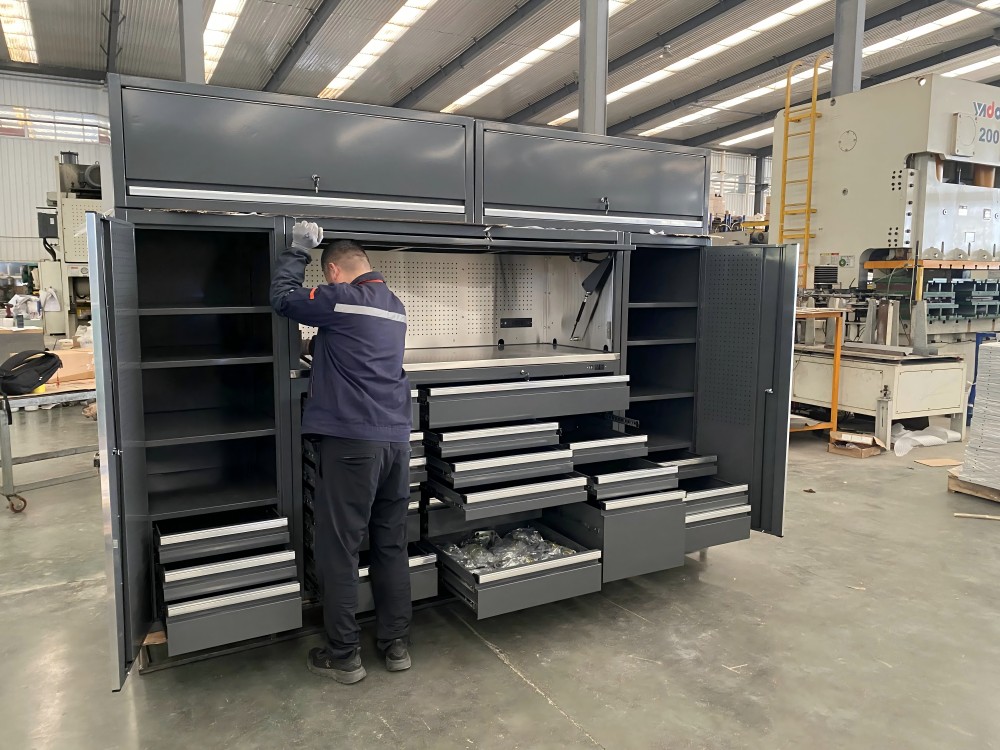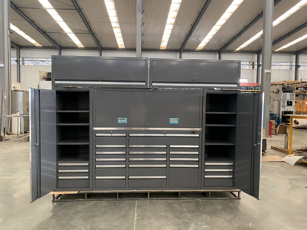Diseinu modular eta pertsonalizatutako konbinazio berria: Hormako armairuak, solairuko armairuak, erreminta hormak eta abar bezalako moduluen zatiketa librea onartzen du. Egitura eta materialen berriragailua. ingurune hezeak edo hautsezkoak egokiak dira; Kabinetearen atearen bisagrak 50.000 irekidura eta itxiera proba gainditu ditu, eta bizitza zabala 3 aldiz luzatzen da.
