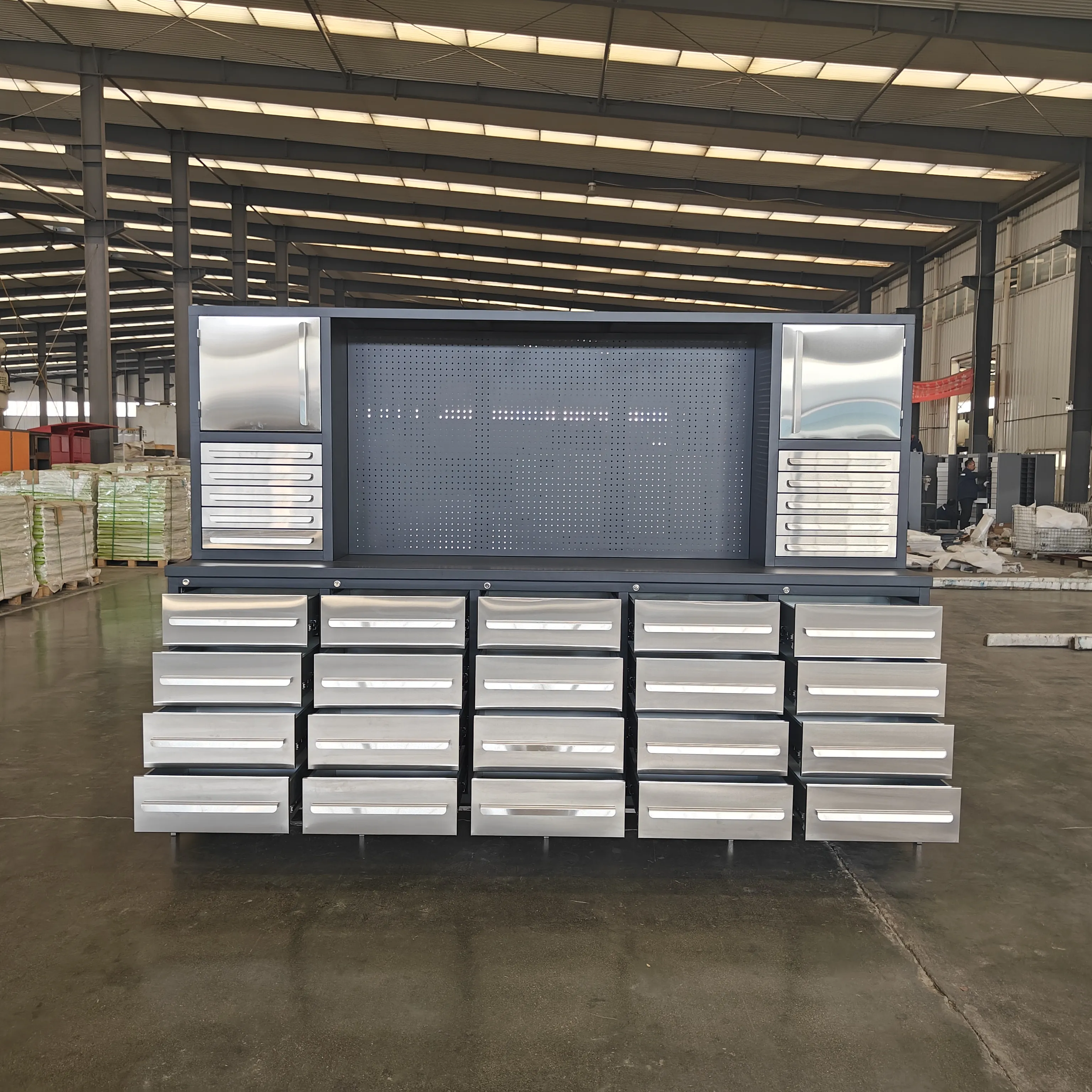 Biltegirako espazio polifazetikoa: tiraderak, armairuak edo kakoak mahaiaren azpian ezartzen dira edo, hala nola, tresna txikiak, piezak, torlojuak eta abar bezalako elementuak gordetzeko, lan-eremua txukun mantentzeko.