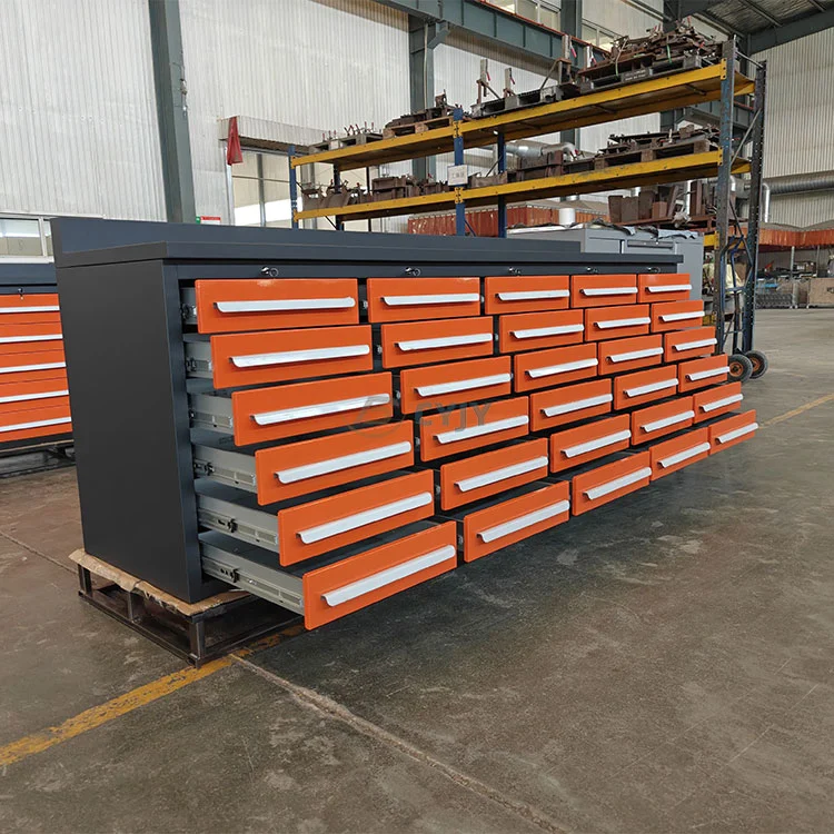 Orange 30 tiradera lanbainak hotz-ijezitako altzairuzko plakaz eginda dago, herdoilaren aurkako estaldurarekin, korrosioarekiko erresistentea eta higadurarekiko erresistentea da eta hezetasun edo ingurune industrialetara egokitu daiteke. Orange 30 tiradera lanbench-ek geruza anitzeko iragarkiak biltegiratzeko espazioa eskaintzen du, Tresnak, osagarriak eta ekipamendu txikien partizioen kudeaketa onartzen du eta lanaren eraginkortasuna hobetzen du. Orange 30 tiradera lanbainen tiraderak luzapen osoko errailak ditu, erabat kargatuta daudenean irekiera leuna eta ixtea onartzen dutenak, funtzionamendu esperientzia hobetuz.
